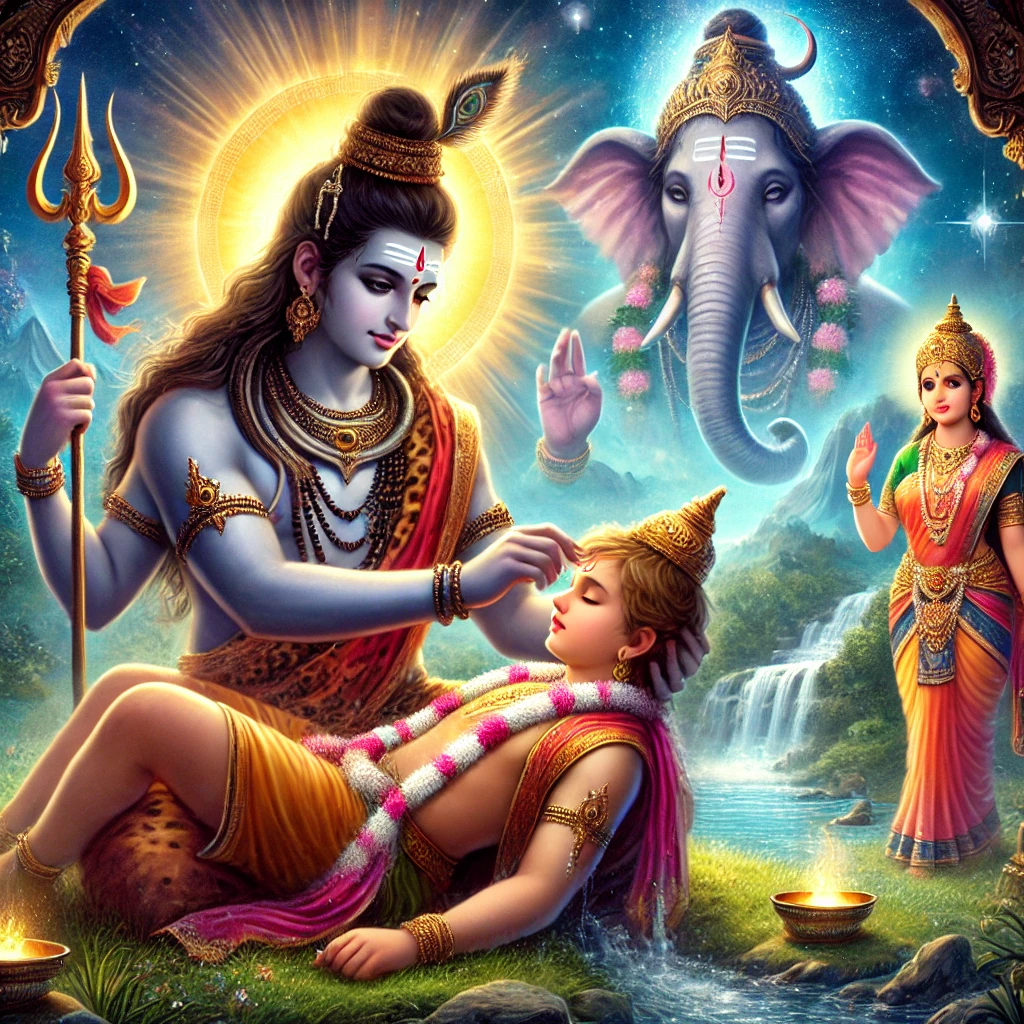 एक बार माता पार्वती ने स्नान करने से पहले अपने शरीर के उबटन से एक बालक को बनाया और उसमें प्राण डाल दिए। उन्होंने उस बालक से कहा कि वह द्वार पर पहरा दे और किसी को अंदर आने न दे। उसी समय भगवान शिव, जो माता पार्वती के पति थे, वहां पहुंचे। बालक ने उन्हें अंदर जाने से रोक दिया, क्योंकि उसे अपनी माँ का आदेश था। इससे भगवान शिव क्रोधित हो गए और उन्होंने बालक का सिर काट दिया।